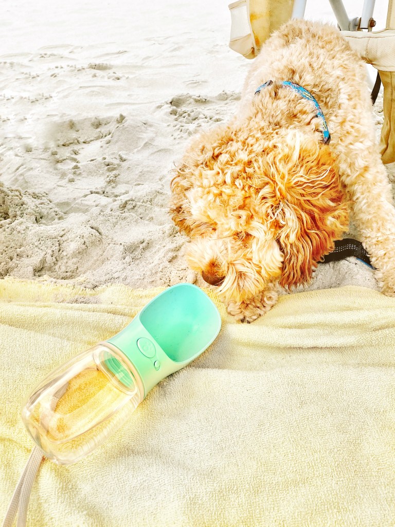 This dog water bottle is great for traveling in the car, hiking or beach days. I was tired of bringing a water bowl and separate water bottle for Rye Lee that he kept spilling on the floor of the car or getting sand in while at the beach. A leak-proof, portable water bottle allows your puppy to drink what he wants and then return what’s left back into the bottle without wasting any water. There’s lots of great options out there, but here is the one I bought on Amazon from MalsiPree. I like that it has a lock so water doesn’t accidentally spill in your bag.
