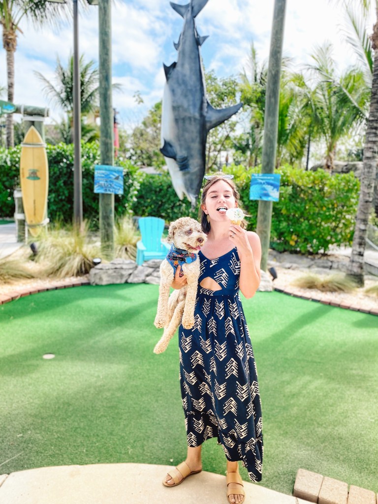 Try the cotton candy or birthday cake ice cream at 3 Scoops Ice Cream. There are plenty of outdoor picnic benches you for to eat your ice cream with your pup at your side. The ice cream shop is attached to Lighthouse Cove Adventure Golf and Burger Shack is next door.