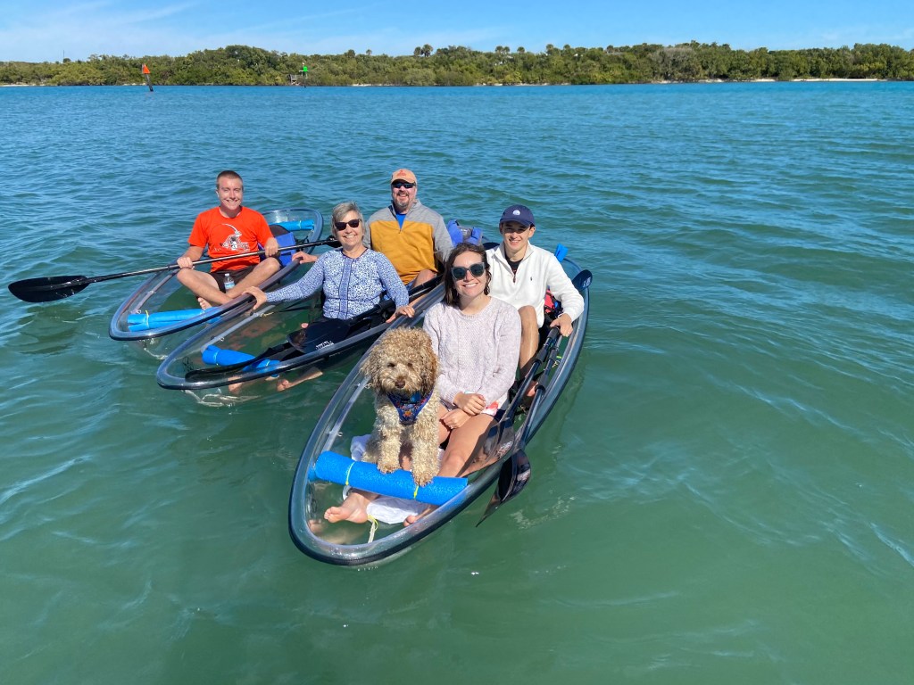 Book a kayak tour with Get Up and Go Kayaking in advance. The unique clear kayaks add to the experience because you watch wildlife swim under such as manatees and turtles. You can bring dogs up to 20 pounds on the tour with you. The kayak company asks you to bring a towel to put on the bottom of the kayak where your dog sits so that he doesn’t scratch the kayak. We had a great time on our tour and saw 5 manatees, a sea turtle and a starfish. The tours cost $55 per person.