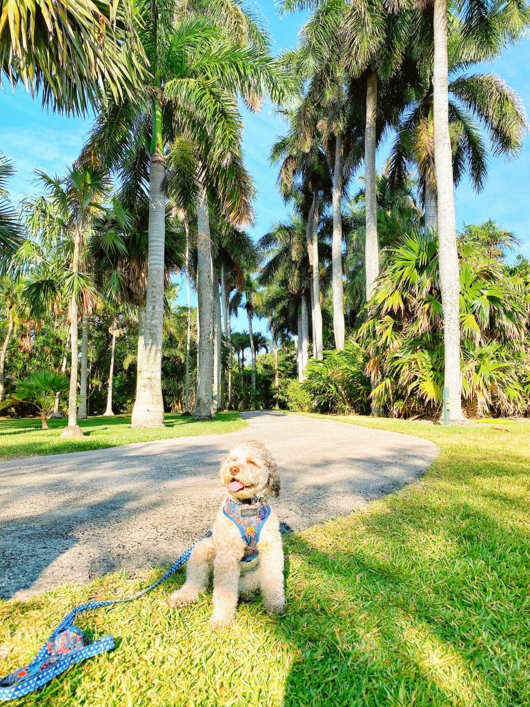 Rye Lee and I visited Fairchild Garden during their Dog Date Stroll event on a Sunday morning. Fairchild typically hosts the Dog Date Stroll events from 8:00am-10:00am on Sunday mornings and Thursday evenings from 5:00pm-7:30pm. The adult tickets cost $16.95, children from 6-17 cost $7.95 and children 5 and under are free. The ticket prices are discounted from Fairchild Garden’s normal prices because you are limited to two hours. However, two hours are plenty to walk through the entire grounds, play with the other puppies, and to stop by the Glasshouse Cafe for a drink and snacks. Check out Fairchild Tropical Botanic Garden’s website for more information on the event dates and to purchase your tickets. I recommend purchasing the tickets in advance because you are asked to sign a dog waiver.